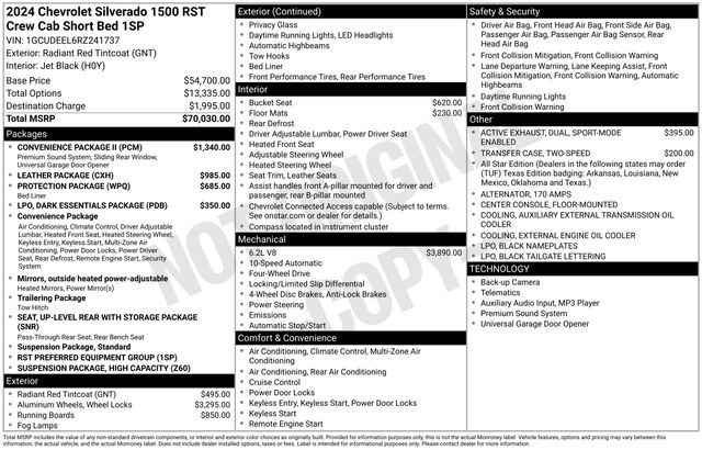 4WD, **Lifetime Powertrain Limited Warranty*** This vehicle qualifies for our Lifetime Powertrain Limited warranty 100% Parts coverage 100% Labor coverage.- Unlimited Mileage- Unlimited Time - Just a $100 deductible. Simple and easy Just follow recommended maintenance at selling dealer or at a pre-a, Special Event Vehicle 4,283 miles, 10-Speed Automatic, 4WD, Black Leather, 10-Way Power Driver Seat w/Lumbar, 12.3" Multicolor Reconfigurable Digital Display, 120-Volt Bed Mounted Power Outlet, 120-Volt Interior Power Outlet, 6-Speaker Audio System, All-Star Edition, Auto-Locking Rear Differential, Black Name Plates (LPO), Bluetooth For Phone, Chevrolet Connected Access Capable, Chevytec Spray-On Black Bedliner, Color-Keyed Carpeting Floor Covering, Convenience Package, Convenience Package II, Dark Essentials Package (LPO), Deep-Tinted Glass, Dual Rear USB Ports (Charge Only), Dual-Zone Automatic Climate Control, Electric Rear-Window Defogger, Electrical Steering Column Lock, Electronic Cruise Control, EZ Lift Power Lock & Release Tailgate, Front Frame-Mounted Black Recovery Hooks, Front LED Fog Lamps, Front Rubberized Vinyl Floor Mats, HD Rear Vision Camera, Heated Driver & Front Outboard Passenger Seats, Heated Power-Adjustable Outside Mirrors, Heated Steering Wheel, High Capacity Suspension Package, High Gloss Black Mirror Caps, Hitch Guidance, Hitch Guidance w/Hitch View, In-Vehicle Trailering System App, Inside Rear-View Mirror w/Tilt, Integrated Trailer Brake Controller, Keyless Open & Start, Leather Package, Leather-Appointed Front Seat Trim, LED Cargo Area Lighting, OnStar & Chevrolet Connected Services Capable, Power Front Windows w/Driver Express Up/Down, Power Front Windows w/Passenger Express Down, Power Rear Windows w/Express Down, Power Sliding Rear Window w/Rear Defogger, Preferred Equipment Group 1SP, Premium Bose 7-Speaker Sound System, Protection Package, Rear 60/40 Folding Bench Seat (Folds Up), Rear Rubberized-Vinyl Floor Mats, Rear Wheelhouse Liners, Remote Vehicle Starter System, SiriusXM w/360L, Standard Tailgate, Steering Wheel Audio Controls, Theft Deterrent System (Unauthorized Entry), Trailering Package, Universal Home Remote, Up-Level Rear Seat w/Storage Package, Wi-Fi Hot Spot Capable, Wrapped Steering Wheel.