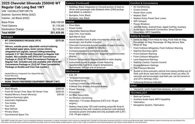 Tax, title, license and $249.00 document preparation fee are extra. Pricing will not include additional installed accessories. Not available with special finance or lease offers. We make every reasonable effort possible to present information and pricing that is true and accurate. Some information provided may come from third party sources. To ensure your complete satisfaction, please verify the accuracy prior to your purchase. It is the responsibility of the consumer to verify the accuracy of information listed. . See dealer for details. Dealer is not responsible for typographical or other errors in pricing. Price may not include installed accessories. Price includes: *$1000 - GM Consumer Cash Program. Applies To All Consumers Exp. 01/02/2026