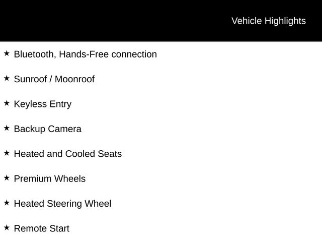 Bluetooth, Hands-Free connection, Sunroof / Moonroof, Keyless Entry, Backup Camera, Heated and Cooled Seats, Premium Wheels, Heated Steering Wheel, Remote Start, AWD.
