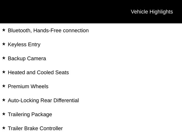 Bluetooth, Hands-Free connection, Keyless Entry, Backup Camera, Heated and Cooled Seats, Premium Wheels, Auto-Locking Rear Differential, Trailering Package, Trailer Brake Controller, Remote Start, Heated Steering Wheel, Power Tailgate, Bose Premium Sound, Spray-On Bedliner, Bed View Camera, Gooseneck/5th Wheel Package, Heated Second Row Seats, 10-Speed Automatic, 4WD, Gideon/Very Dark Atmosphere Leather.