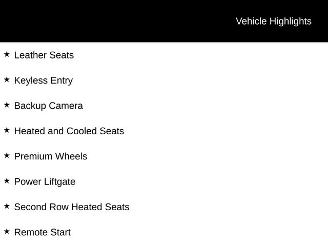 Leather Seats, Keyless Entry, Backup Camera, Heated and Cooled Seats, Premium Wheels, Power Liftgate, Second Row Heated Seats, Remote Start, 4WD, Jet Black Leather.