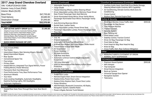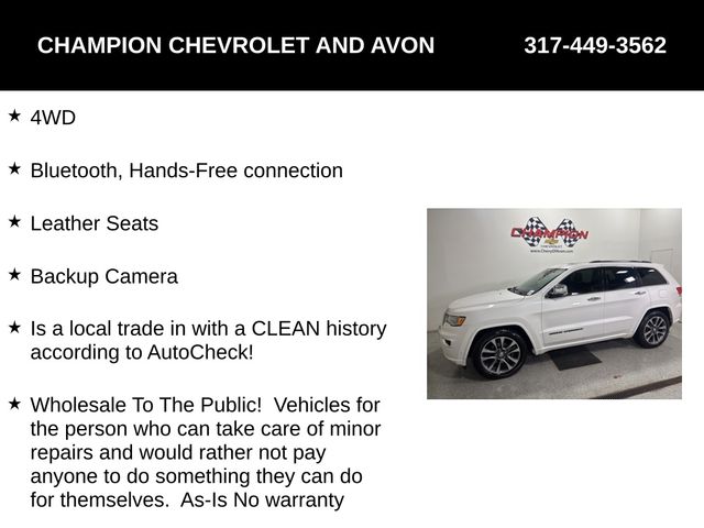 4WD, Bluetooth, Hands-Free connection, Leather Seats, Backup Camera, Is a local trade in with a CLEAN history according to AutoCheck!, Wholesale To The Public! Vehicles for the person who can take care of minor repairs and would rather not pay anyone to do something they can do for themselves. As-Is No warranty, 4WD, Adaptive Cruise Control w/Stop, Advanced Brake Assist, Full Speed FWD Collision Warn Plus, Jeep Active Safety Group, Lane Departure Warning Plus, Navigation System, Parallel & Perp Park Assist w/Stop, Power Liftgate, Power moonroof, Rain Sensitive Windshield Wipers.