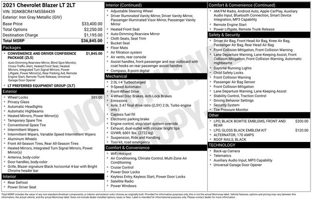 Whether you're looking for a versatile family hauler, a capable adventure companion, or a stylish daily driver, this 2021 Chevrolet Blazer LT is an exceptional choice. Schedule a test drive today and discover the exceptional value and uncompromising quality that this Blazer has to offer.
