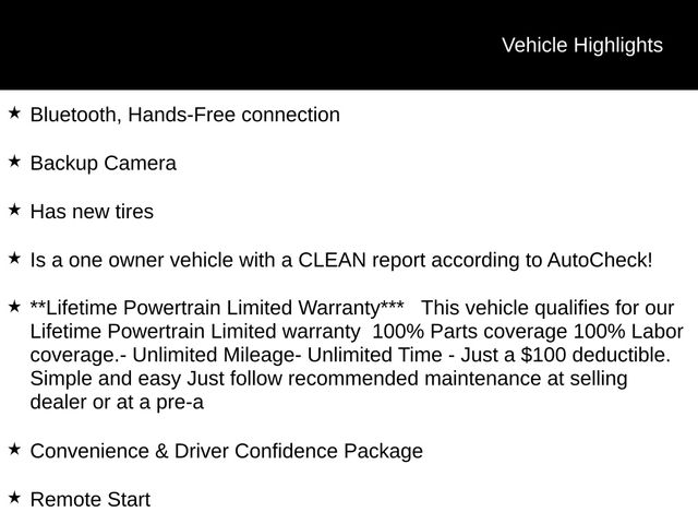 - **Lifetime Powertrain Limited Warranty*** This vehicle qualifies for our Lifetime Powertrain Limited warranty 100% Parts coverage 100% Labor coverage.- Unlimited Mileage- Unlimited Time - Just a $100 deductible. Simple and easy Just follow recommended maintenance at selling dealer or at a pre-a