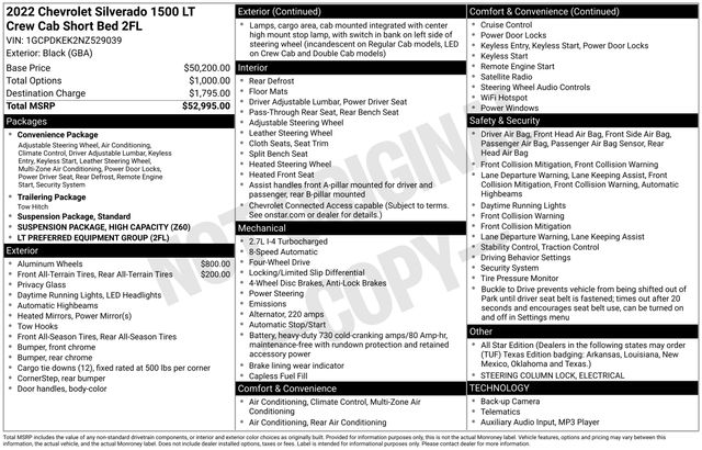Equipped with a 2.7L Turbo engine and 8-speed automatic transmission, the Silverado 1500 LT delivers impressive performance and efficiency, with an EPA-estimated 17 city/20 highway MPG. The 4WD system provides exceptional traction and control, ensuring you can conquer any terrain with confidence.