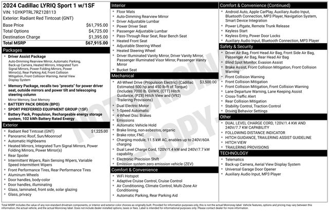 Discover the true essence of electric luxury with the 2024 Cadillac LYRIQ Sport. This exceptional vehicle is a testament to Cadillac's commitment to innovation, craftsmanship, and uncompromising performance. Experience the future of driving today and schedule a test drive at our showroom.