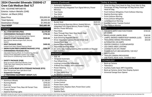 4WD, Bluetooth, Hands-Free connection, Backup Camera, Is a one owner vehicle with a CLEAN report according to AutoCheck!, **Lifetime Powertrain Limited Warranty*** This vehicle qualifies for our Lifetime Powertrain Limited warranty 100% Parts coverage 100% Labor coverage.- Unlimited Mileage- Unlimited Time - Just a $100 deductible. Simple and easy Just follow recommended maintenance at selling dealer or at a pre-a, 10-Speed Automatic, 4WD, Black Cloth, 120-Volt Bed Mounted Power Outlet, 170 Amp Alternator, 2-Speed Electronic Shift Transfer Case, 220 Amp Alternator, 4-Way Manual Driver Seat Adjuster, 6" Rectangular Chromed Tubular Assist Steps, All Star Edition, Black Mirror Caps, Bluetooth For Phone, Chevrolet Connected Access Capable, Cloth Rear Seat w/Storage Package, Color-Keyed Carpeting Floor Covering, Compass, Convenience Package, Convenience Package II, Deep-Tinted Glass, Electric Rear-Window Defogger, Electronic Cruise Control w/Set & Resume Speed, EZ Lift Power Lock & Release Tailgate, Front Rubberized Vinyl Floor Mats, Halogen Reflector Headlamps, HD Rear Vision Camera, Heat Package, Heated Driver & Front Outboard Passenger Seating, Heated Steering Wheel, Heated Vertical Trailering Mirrors, Hitch Guidance w/Hitch View, In-Vehicle Trailering App System, Keyless Open & Start, Manual Tilt-Wheel Steering Column, OnStar & Chevrolet Connected Services Capable, Power Door Locks, Power Front Windows w/Driver Express Up/Down, Power Front Windows w/Passenger Express Down, Power Rear Windows w/Express Down, Power Sliding Rear Window w/Defogger, Preferred Equipment Group 1LT, Push Button Start, Rear 60/40 Folding Bench Seat (Folds Up), Rear Rubberized Vinyl Floor Mats, Remote Start Package, Remote Vehicle Starter System, Safety Package, SiriusXM w/360L, Snow Plow Prep/Camper Package, Standard Tailgate, Steering Wheel Audio Controls, Unauthorized Entry Theft-Deterrent System, Universal Home Remote, Wi-Fi Hotspot Capable, Wireless Phone Projection, Wrapped Steering Wheel.