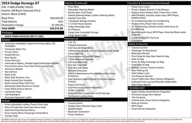 Whether you're embarking on family adventures or seeking a versatile SUV for your daily commute, the 2024 Dodge Durango GT is the perfect choice. Experience the power, technology, and refined style that set this vehicle apart.